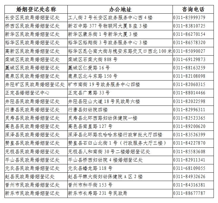 目前石家庄市婚姻登记已实现“跨省通办”。双方均非河北省户籍的当事人,可以凭一方持有的石家庄市居住证和双方户口簿、身份证,在居住证发放地婚姻登记机关申请办理结婚登记,或者自行选择在一方常住户口所在地办理结婚登记;一方或双方户籍地在河北省内的,无须提供居住证,可以在市内任一婚姻登记机关办理结婚登记。